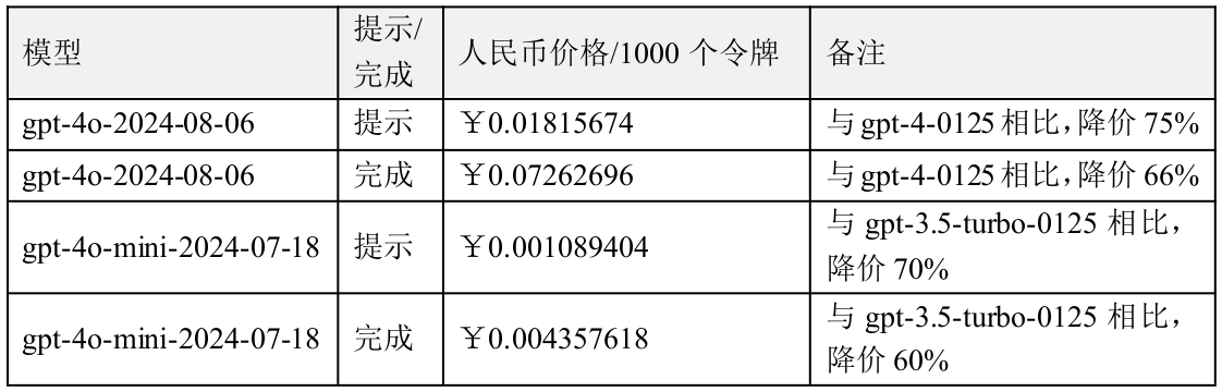 5. API模式的gpt-4模型由gpt-4-0125升级到gpt-4o-2024-08-06 ,且支持文本和图生文功能。