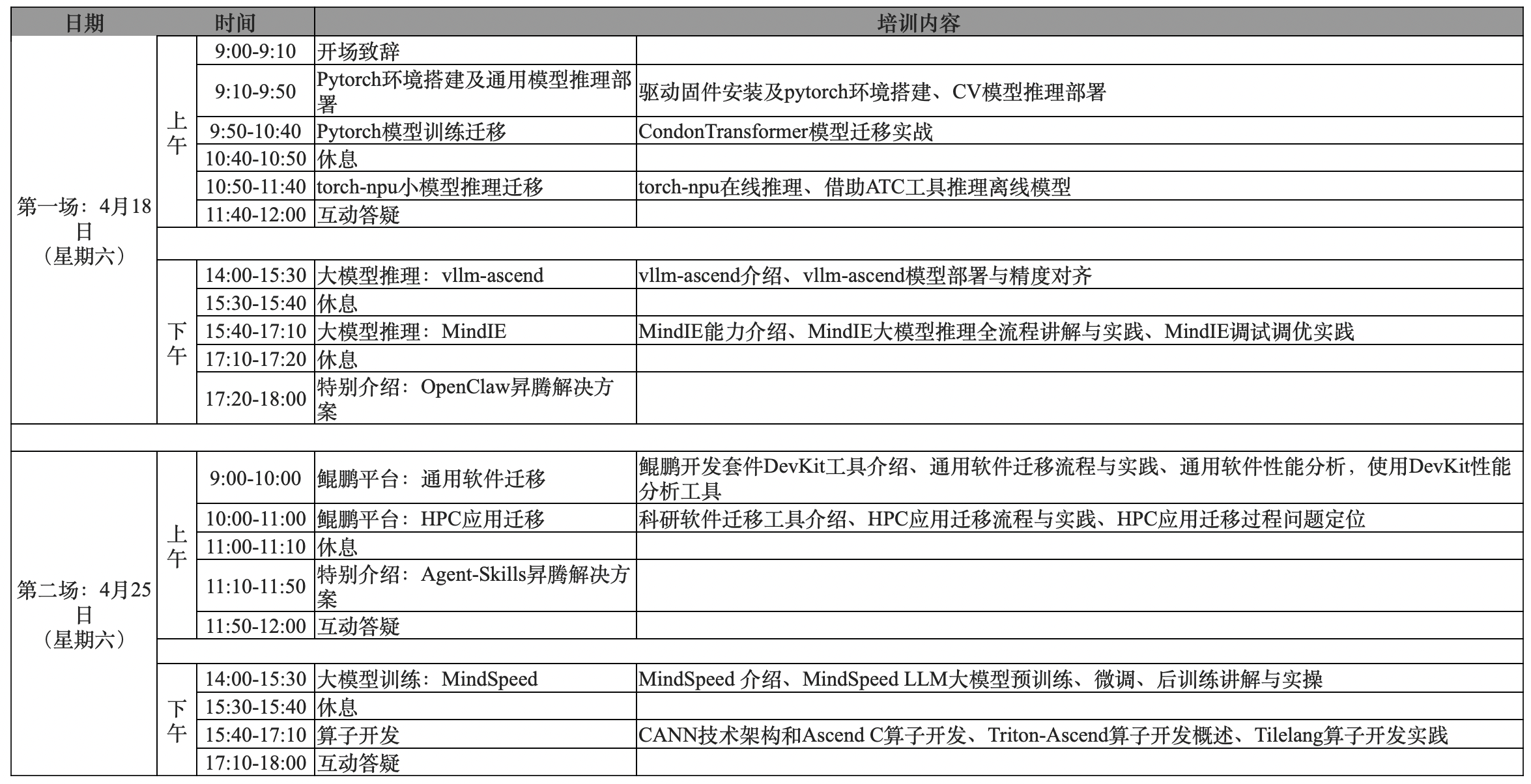 本次培训共分4月18日、4月25日两场开展,具体安排如下: